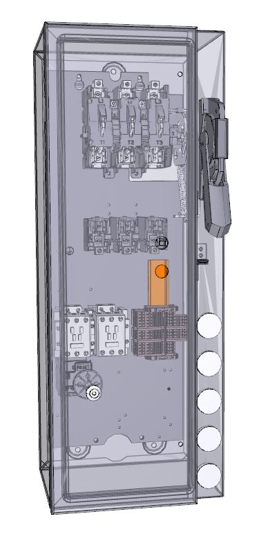 NEMA 306 Fusible Combination Reversing Starter, Size 0, Type 4/4X Watertight, Corrosion-Resistant, Stainless Steel , 120V 60Hz Control Voltage, No Disconnect Size , E100 Solid State, Basic