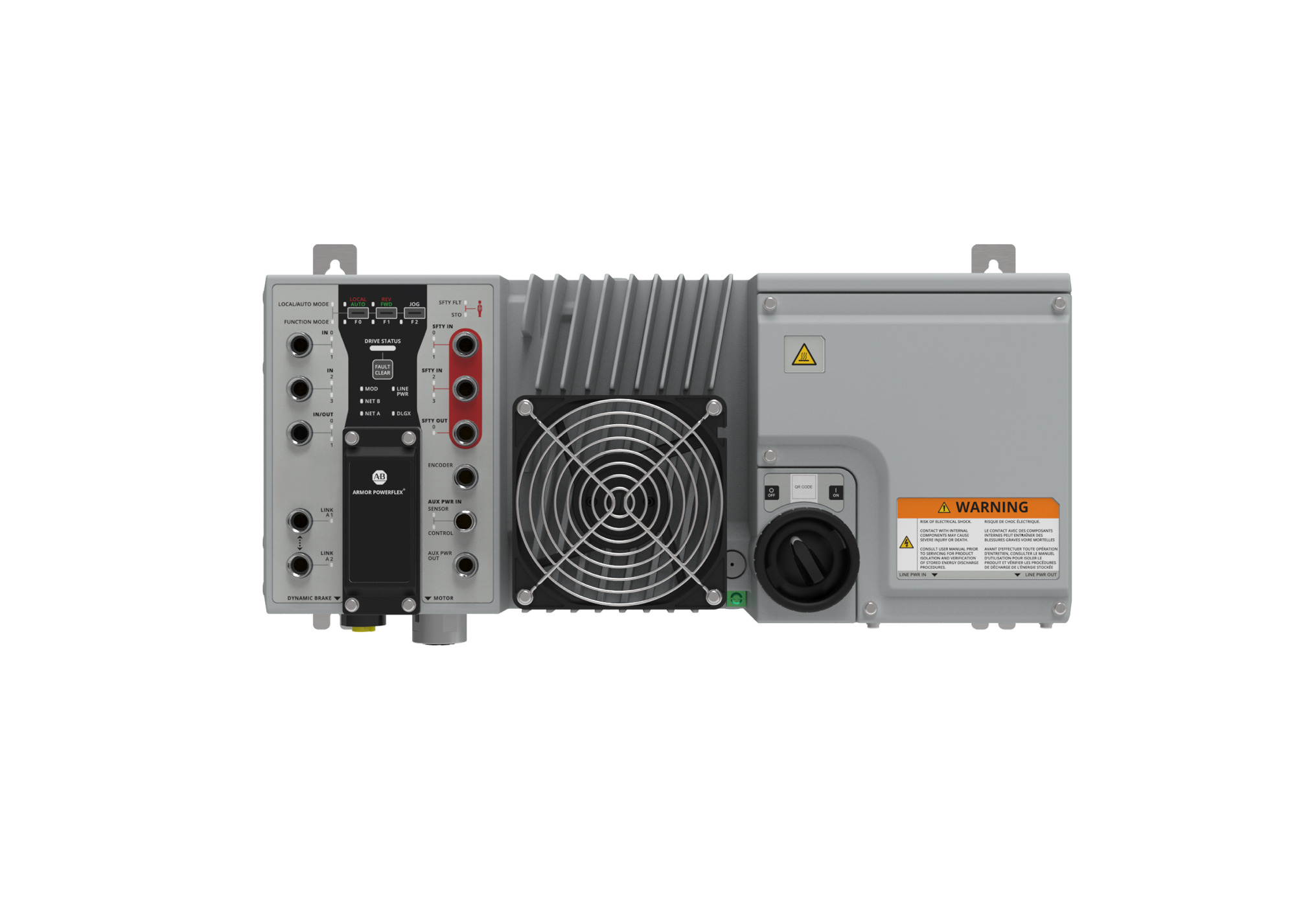 Armor PowerFlex, Advanced Safety Variant, IP54,IP66, Enclosure Type, 380...480V AC (solidly wye-grounded), 50/60 Hz, 5HP, 3.7KW,10.5A, Frame B, External (Customer to supply), Cord/Conduit, Included (Standard Source Brake) ,Default