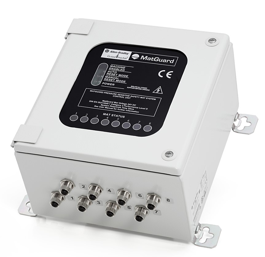 440F Mat Manager, Controller, 24V DC Power, M12 Micro QD 4-Pin Mat Connector, 2 N.O. Safety Outputs , 1 N.C. Aux. Output, M23 QD 12-Pin Power Connector , No Reset Button