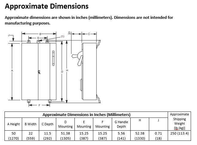 | Enclosure Size [length x width x depth] | 50 x 22 x 11 in. |