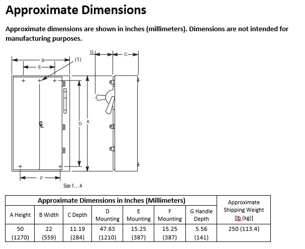 | Enclosure Size [length x width x depth] | 50 x 22 x 11 in. |