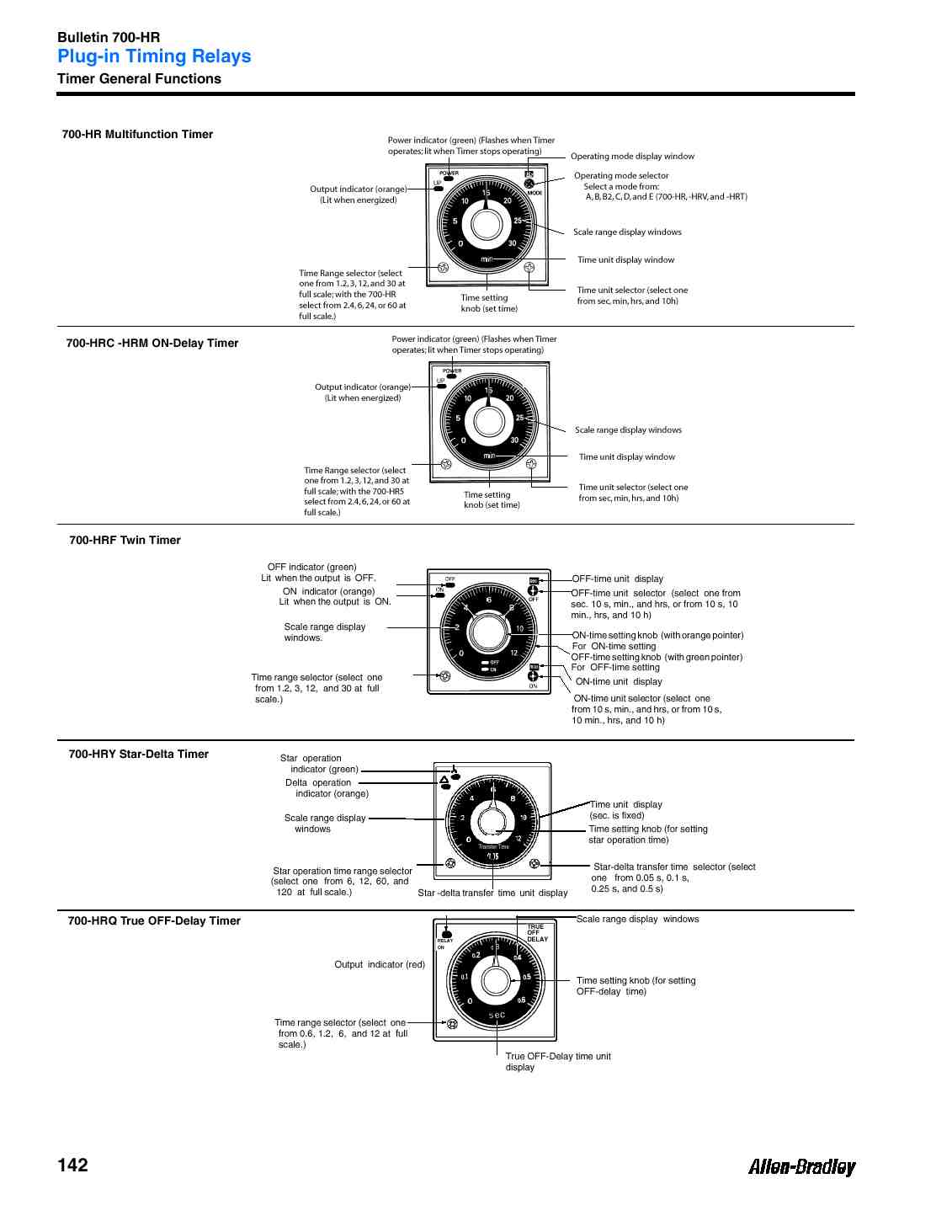 700-HR General Purpose Dial Timing Relay, Multi-Function, 2 Timed Contacts w/ No Voltage Inputs, Multi-Mode (6 Functions), 0.05 seconds to 300 hours, DPDT Timed, 100...240V AC 50/60Hz / 100...125V DC