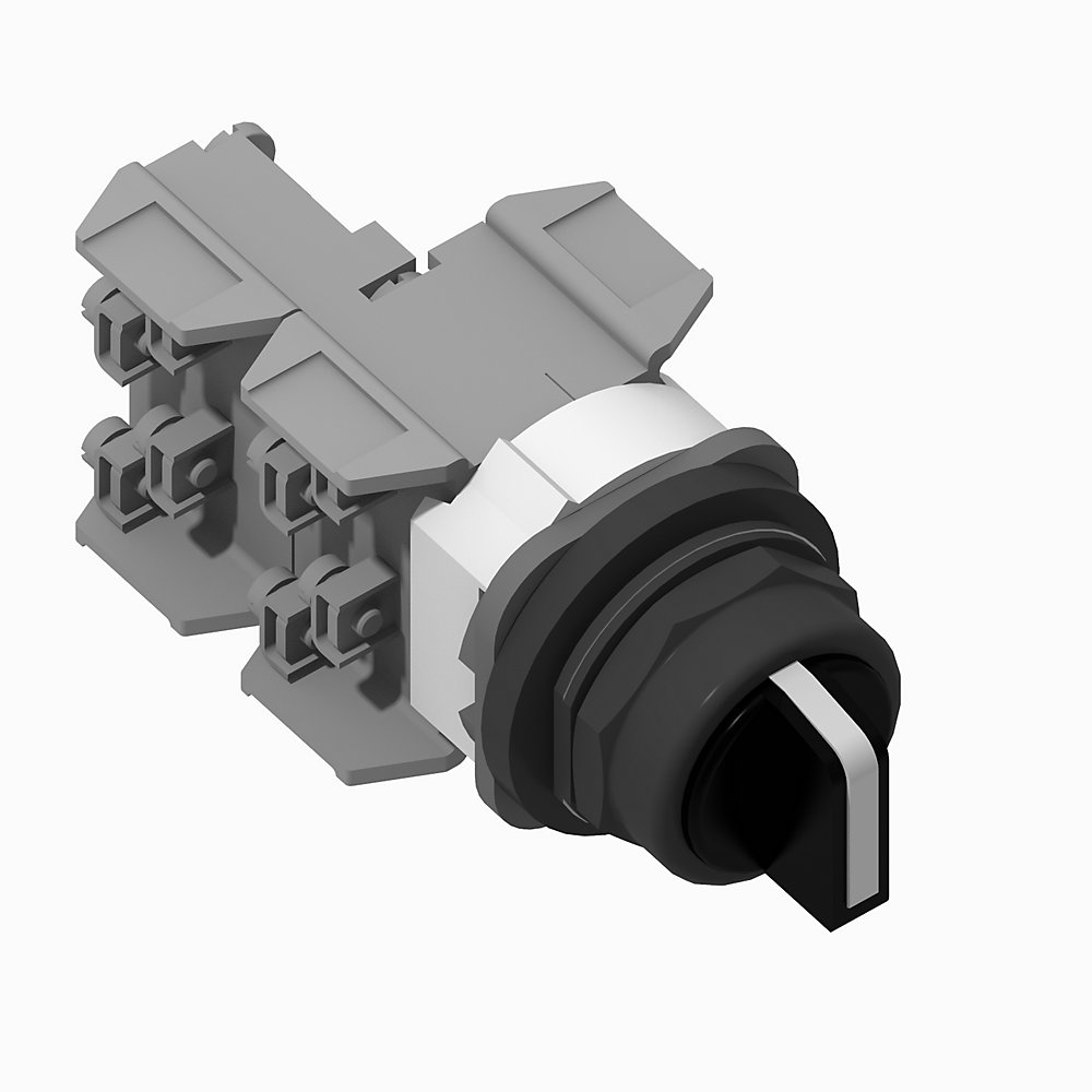 30.5mm Type 4/4X/13 2 Pos Sel. Switch-Non-Illum., White, Std. Knob Spring Return fr/ Left, 3 NO-3 NC