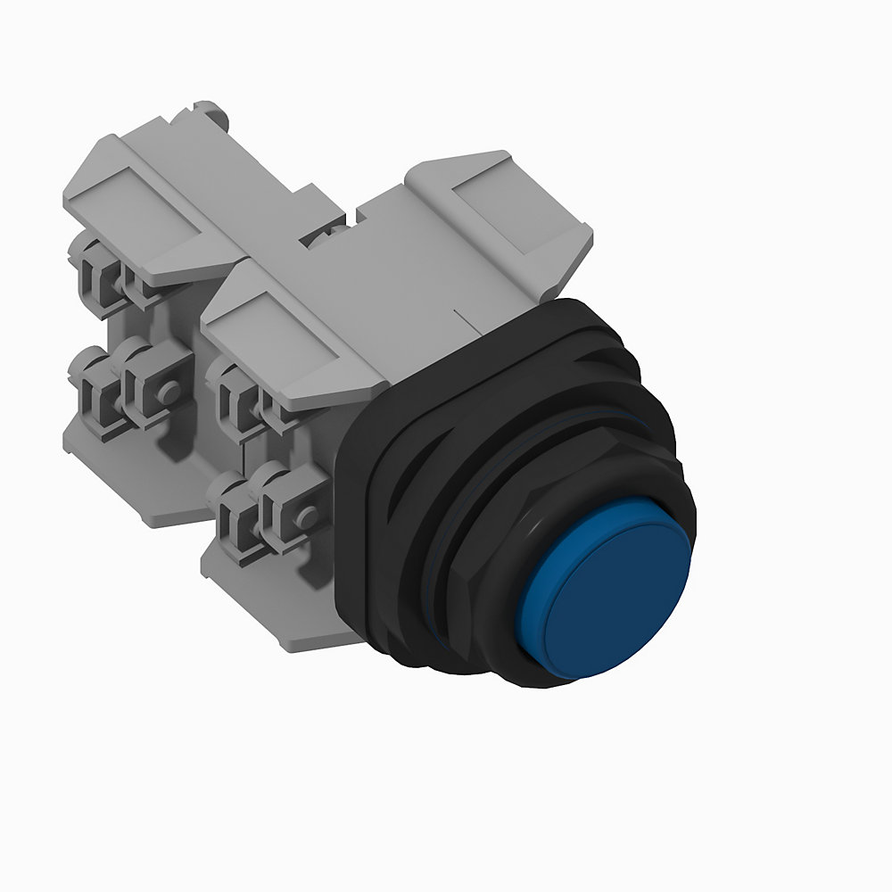 30.5mm Type 4/4X/13 Mom. Contact PB, Non-Illum., Blue, Booted Hd, 3 NO-3 NC