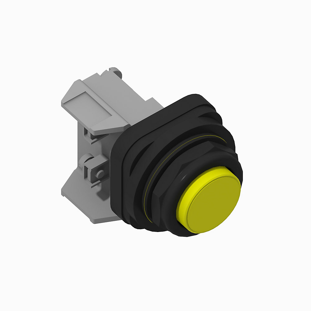 30.5mm Type 4/4X/13 Mom. Contact PB, Non-Illum., Yellow, Booted Hd, 1 NCLB