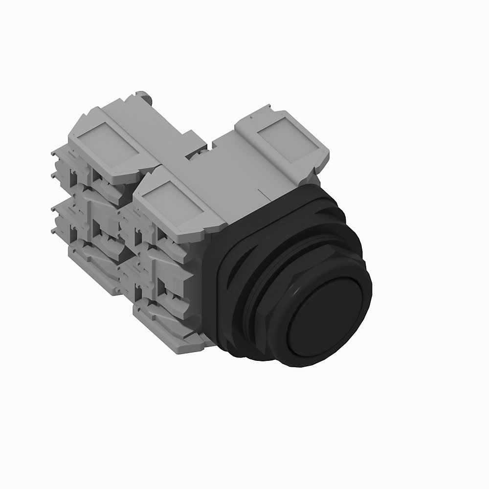 30.5mm Type 4/4X/13 Mom. Contact PB, Non-Illum., Black, Flush Hd, 3 NO-3 NC, Finger Safe Guards