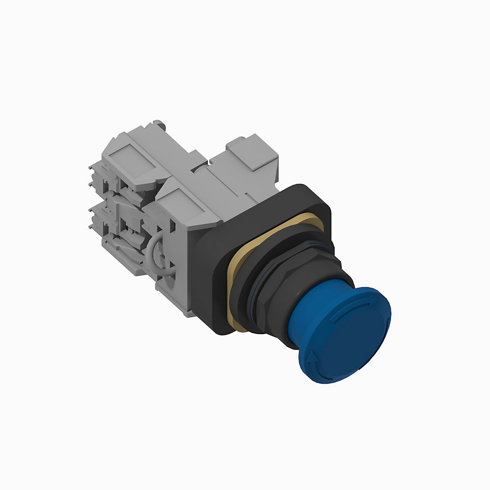 30.5mm Type 4/4X/13 2 Pos. PB-Illum., Push-Pull/Twist, Blue, Mushrm Hd, LED, 12-130V AC/DC, 1 NCLB-1 NO Self Mon., Finger Safe Guards