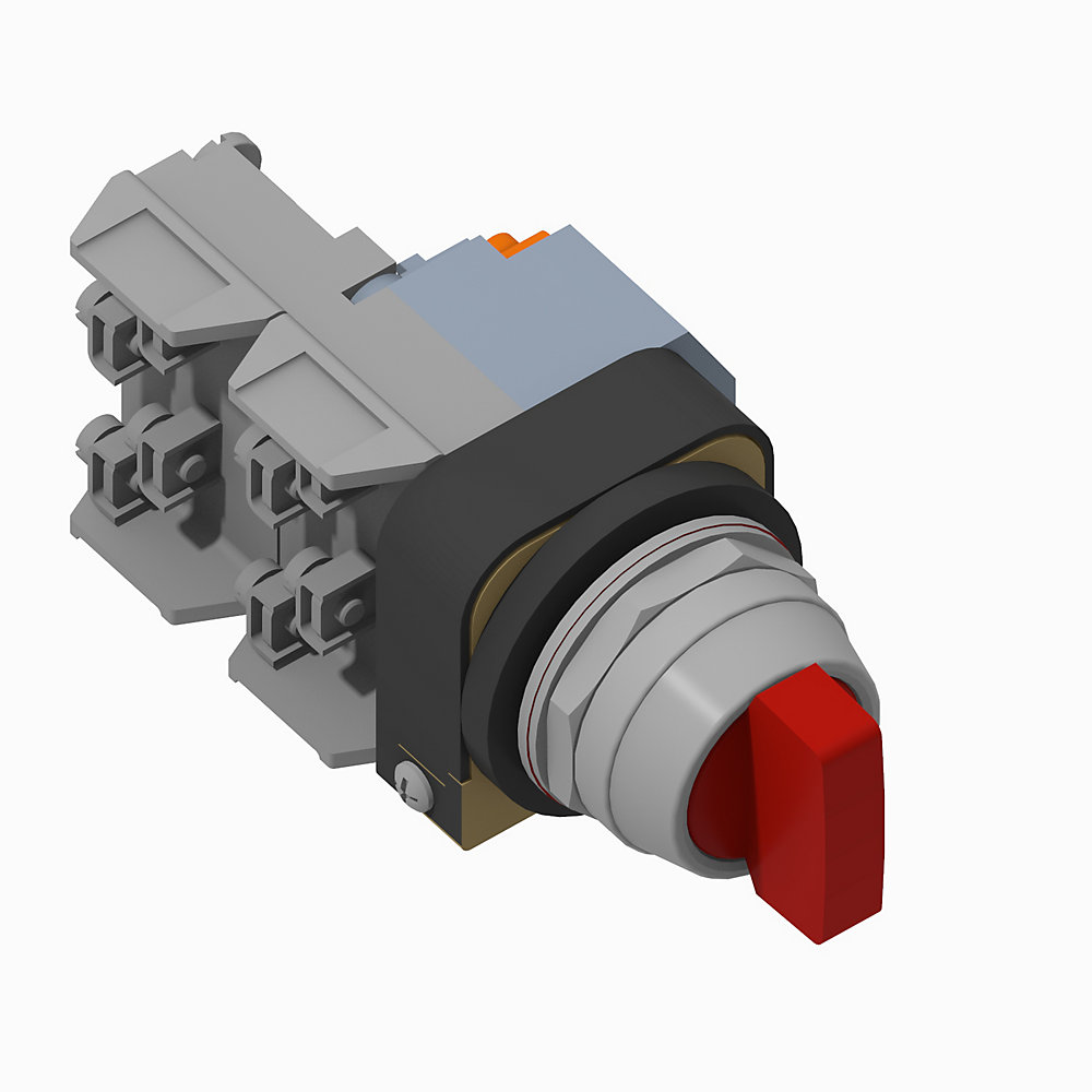 30.5mm Type 4/13 Sel. Switch-Illum., 3 Pos.Transformer, 120V AC 50/60 Hz, Red, Std. Knob Spring Rtn fr/ Both