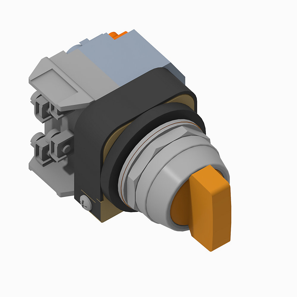 30.5mm Type 4/13 Sel. Switch-Illum., 2 Pos., Transformer, 240V AC 50/60 Hz, Amber, Std. Knob Maint., KB6 Maintained Cam, 1 NO-1 NC