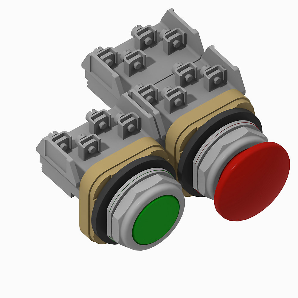 30.5mm Type 4/13 Mech. Interlocked Maint. PB, Vert. Mount, Maint./Maint., Flush/Mushroom, Green/Red, 3 NO-3 NC