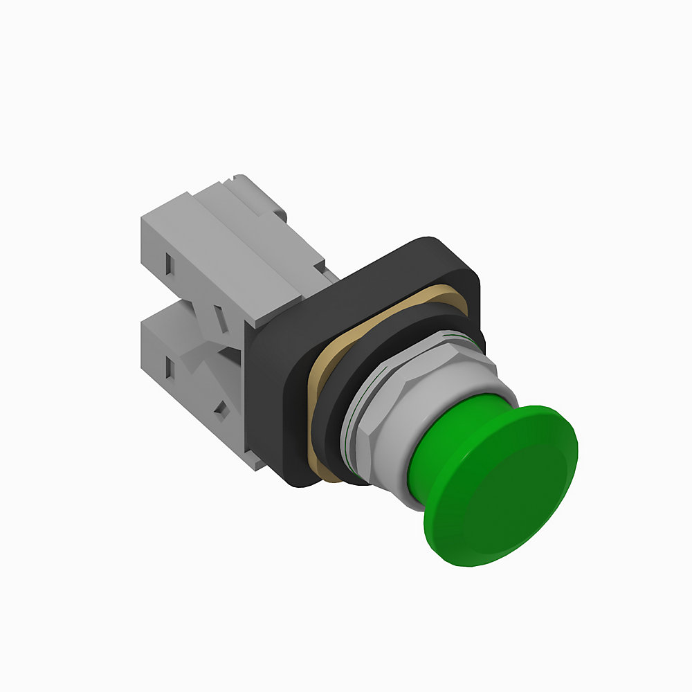30.5mm Type 4/13 2 Pos. PB-Non-Illum., Mushroom Hd (Push-Pull), Green, 1 N.O. - 1 N.C. Stackable Sealed Switch