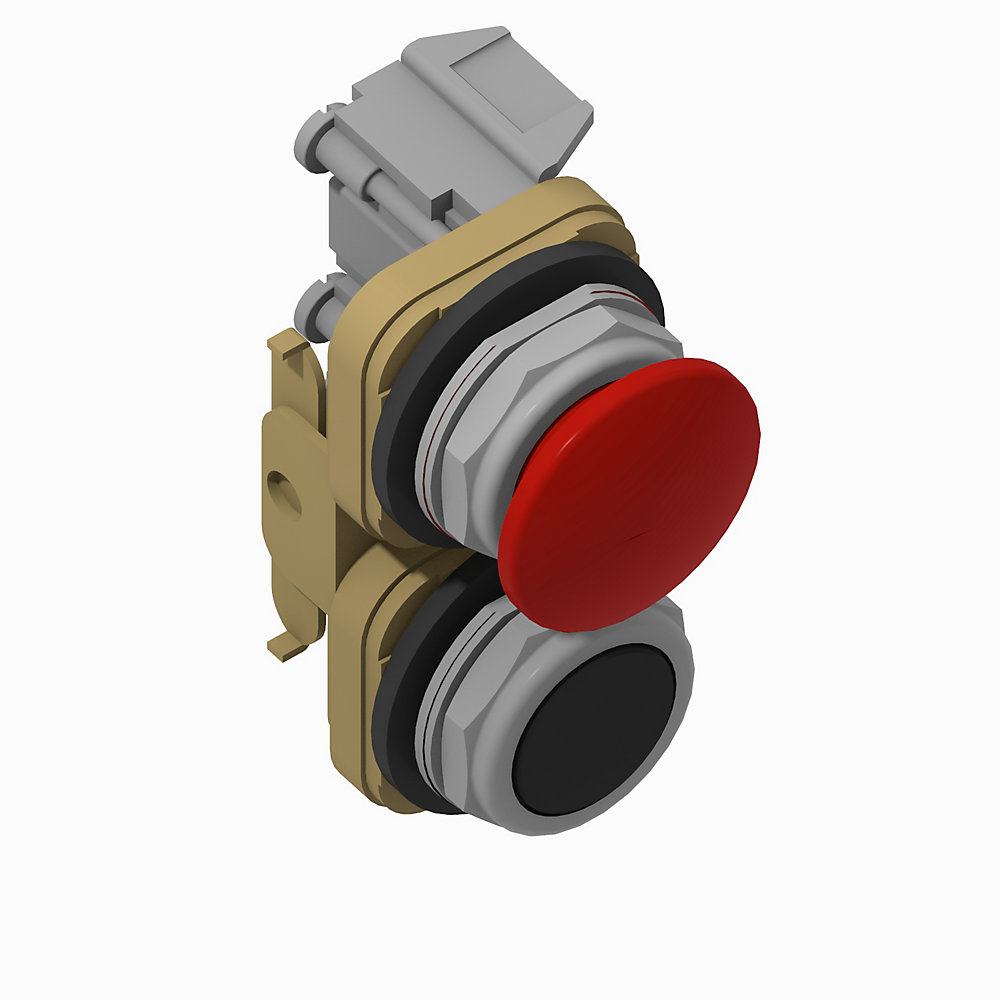 30.5mm Type 4/13 Mech. Interlocked Maint. PB, Horiz. Mount, Maint./Maint., Mushroom/Flush, Red/Black, 2 NO-2 NC