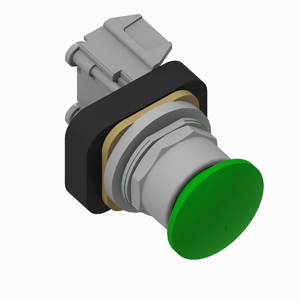 30.5mm Type 4/13 Mom. Contact PB-Illum., Green, Mushroom Hd, Incand./No Options, 24V AC/DC, No Contacts