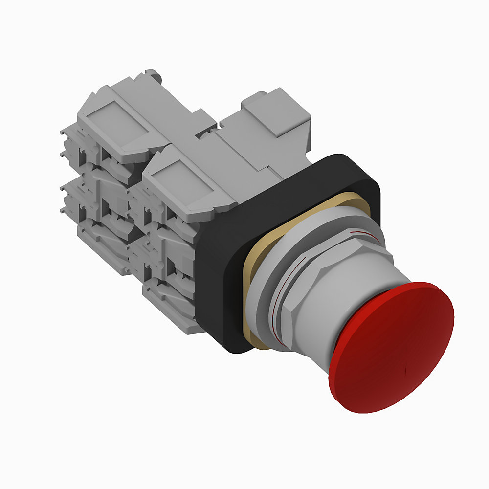 30.5mm Type 4/13 Mom. Contact PB-Illum., Red, Mushroom Hd, LED, 12-130V AC/DC, 2 N.O. - 2 N.C., Finger Safe Guards