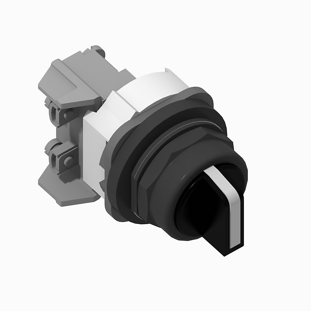 30.5mm Type 4/4X/13 2 Pos Sel. Switch-Non-Illum., White, Std. Knob Maint., 1 NO Mini, Finger Safe Guards