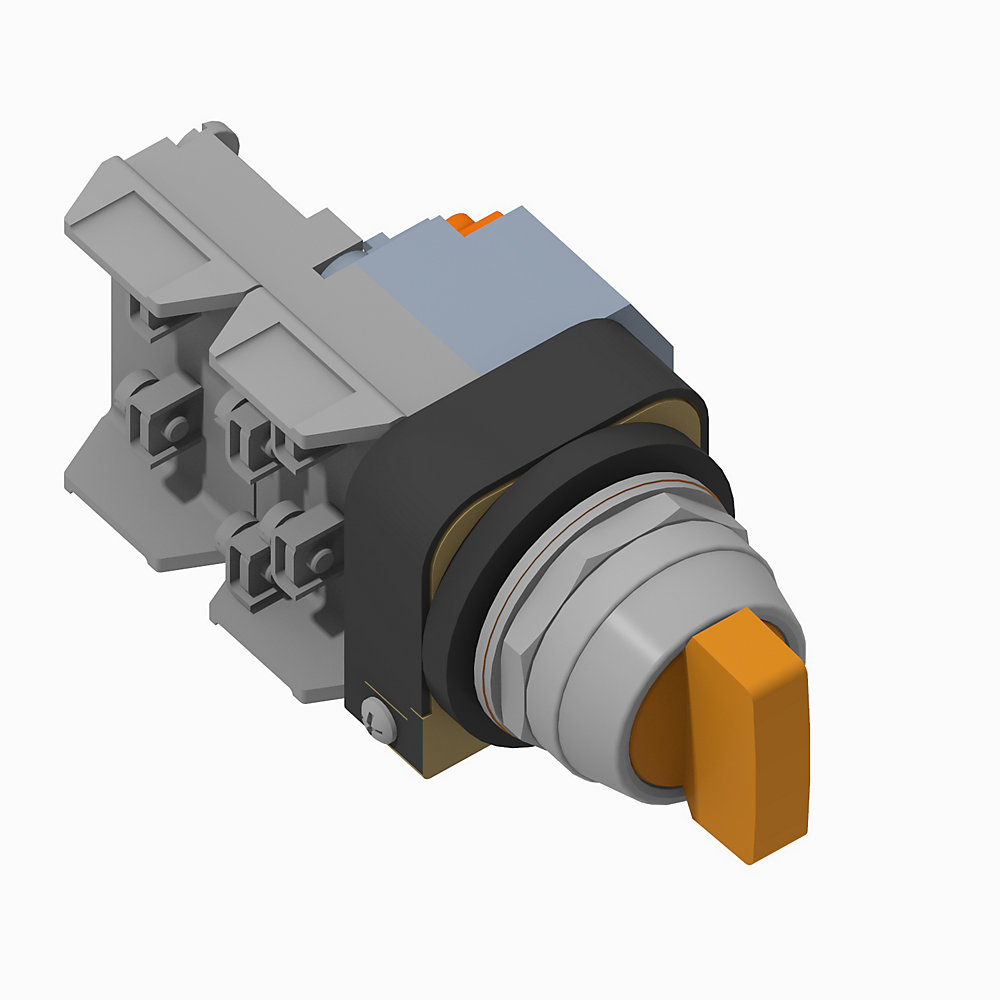 30.5mm Type 4/13 Sel. Switch-Illum., 3 Pos.Transformer, 120V AC 50/60 Hz, Amber, Std. Knob Spring Rtn fr/ Left