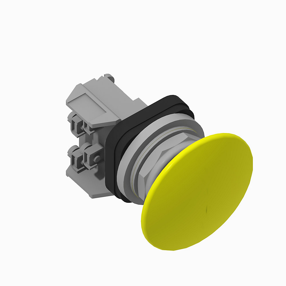 30.5mm Type 4/13 Mom. Contact PB, Non-Illum., Yellow, Mushroom Hd Jumbo-Plastic, 1 NCLB-1 NO