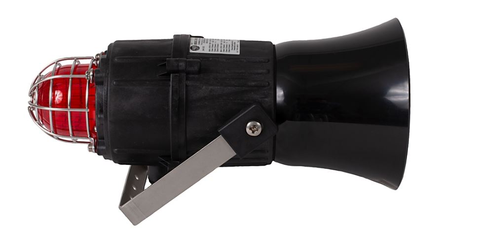 855XC Hazardous Location Beacon/Horn Combo, Black, 1/2 Inch NPT/M20 Conduit Entrance, 230V AC 50/60Hz, 5J Xenon Strobe & 110dB @ 1 meter/45 Tones, 3 Stages, Red