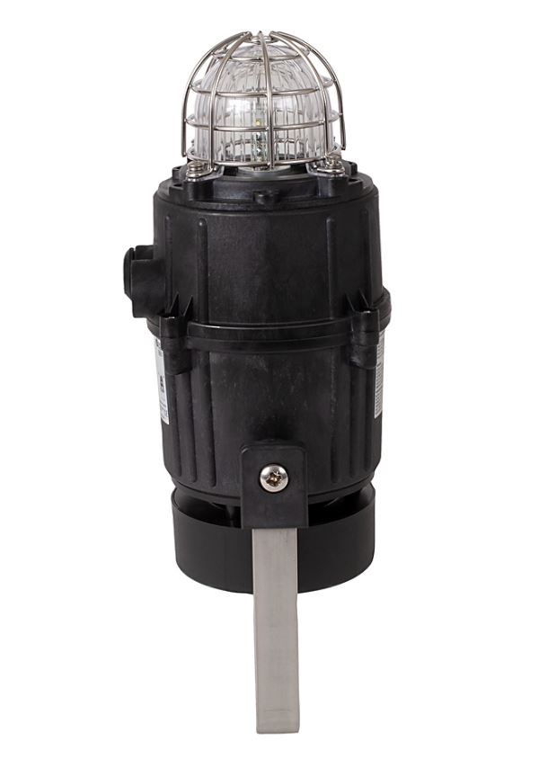 855XC Hazardous Location Beacon/Horn Combo, Black, 1/2 Inch NPT/M20 Conduit Entrance, 230V AC 50/60Hz, LED Beacon & Radial style Horn 110dB @ 1 meter/45 Tones, 3 Stages, Clear