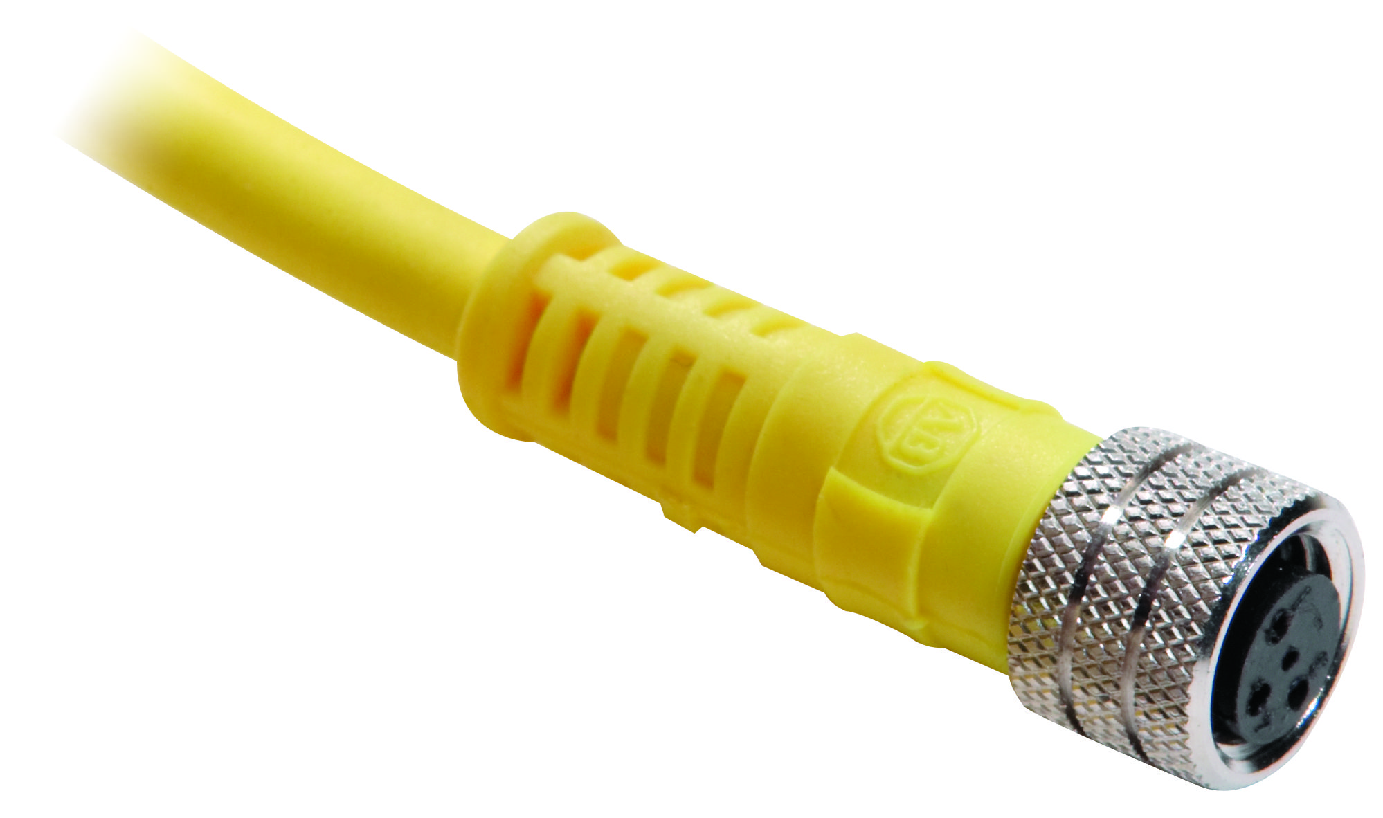 Patchcord: Pico (M8), Female, R-Ang, 3-Pin, PVC Cable, Yellow, Unshielded, No Color Code- Patchcord Cable, DC Mic, Male, Straight, 4-Pin, 10 meter (32.8 feet), 24AWG